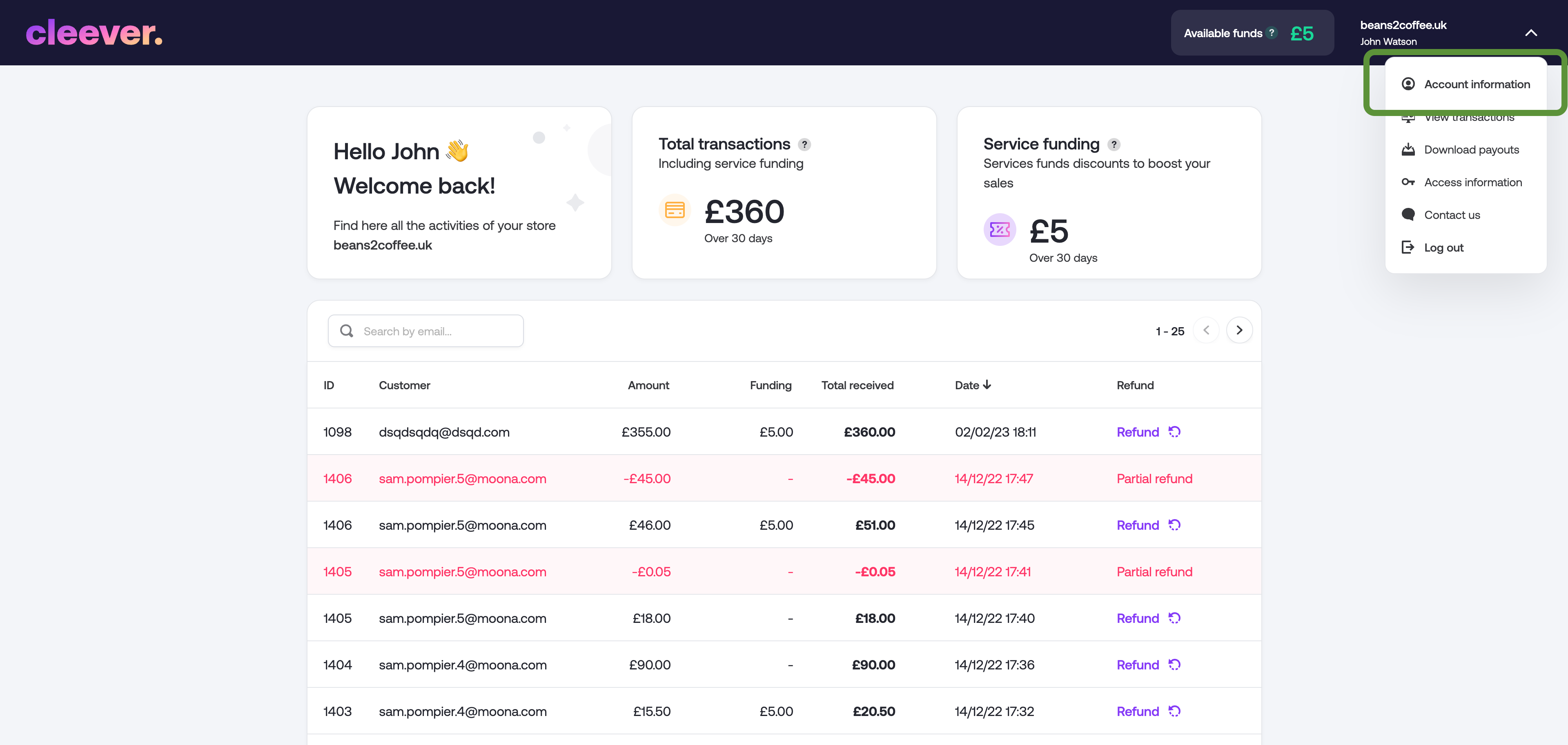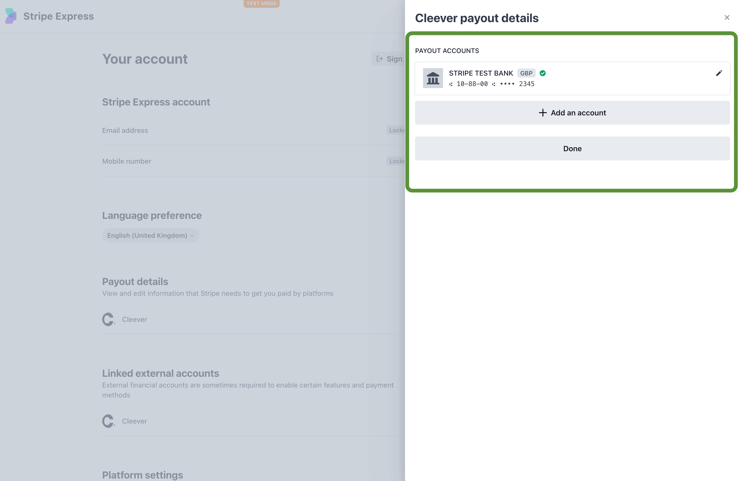 - All the bank account information is contained in the pop-in that appears. You can edit / add accounts from here.